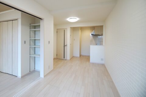 LDKのドアは、天井までの高さがあるハイドアとなっており、壁やインテリアとの...