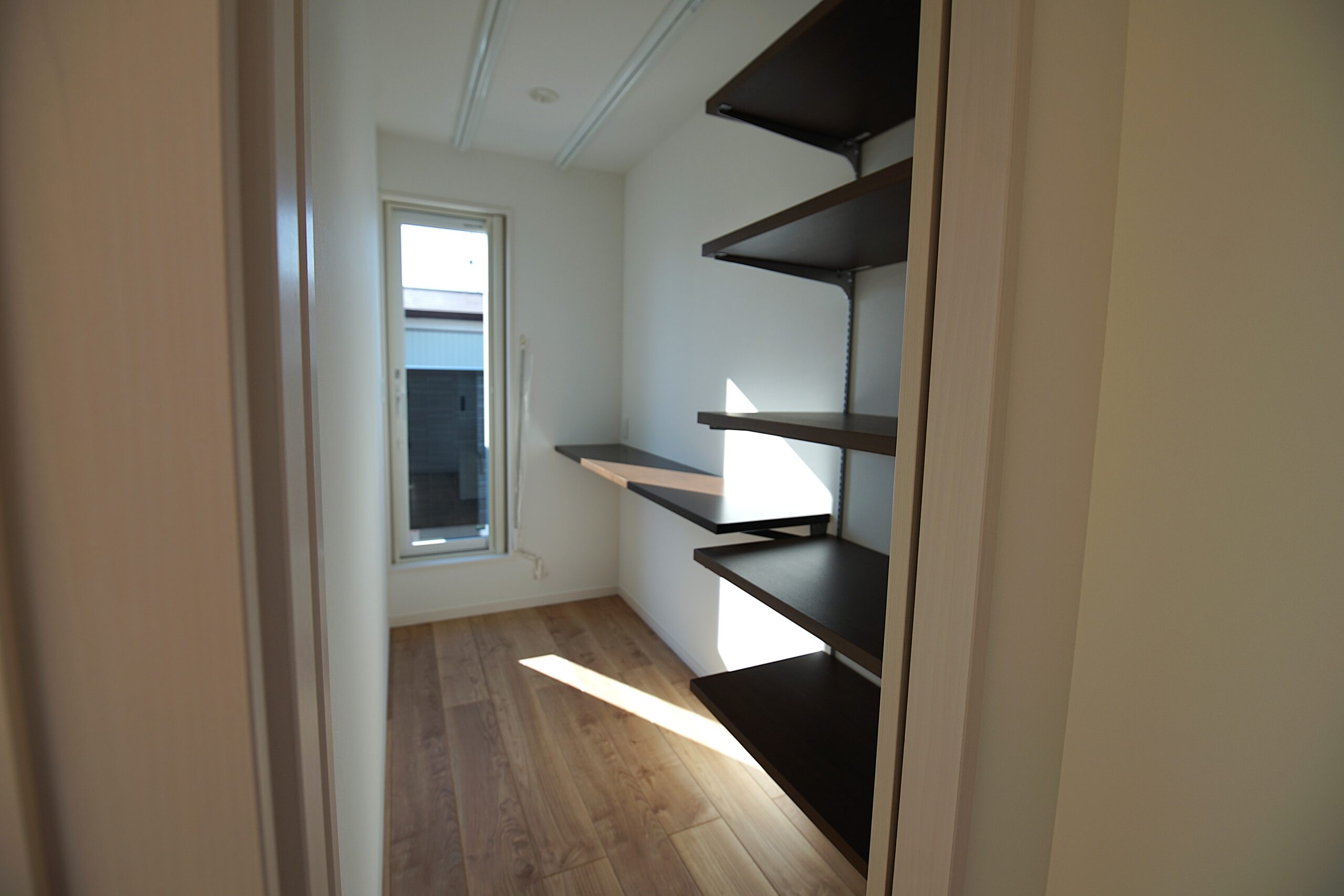 隣接したユーティリティー(家事室)には、物干しや洗濯物を畳む際に便利なカウンターを設置しています。