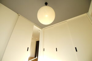 LDKのドアは、天井までの高さがあるハイドアとなっており、壁やインテリアとの一体感や開けた時の解放感が生まれます。