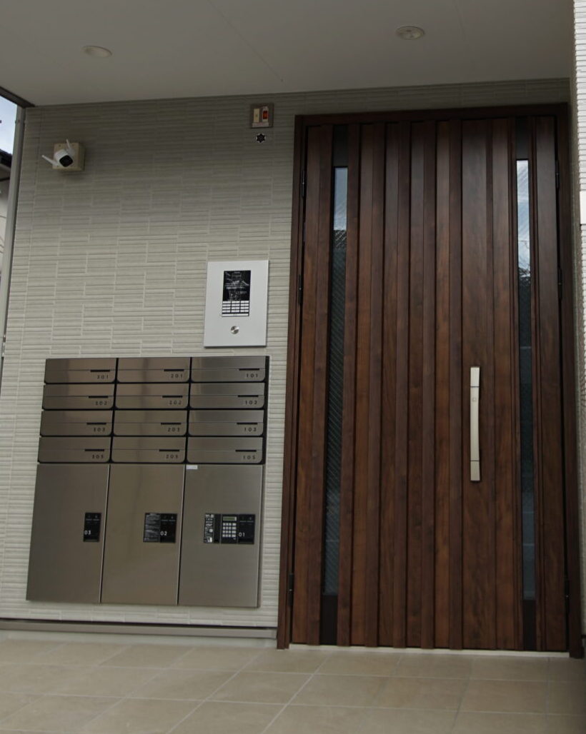 共用玄関には防犯カメラやオートロックを設置し、防犯面にも配慮しております。