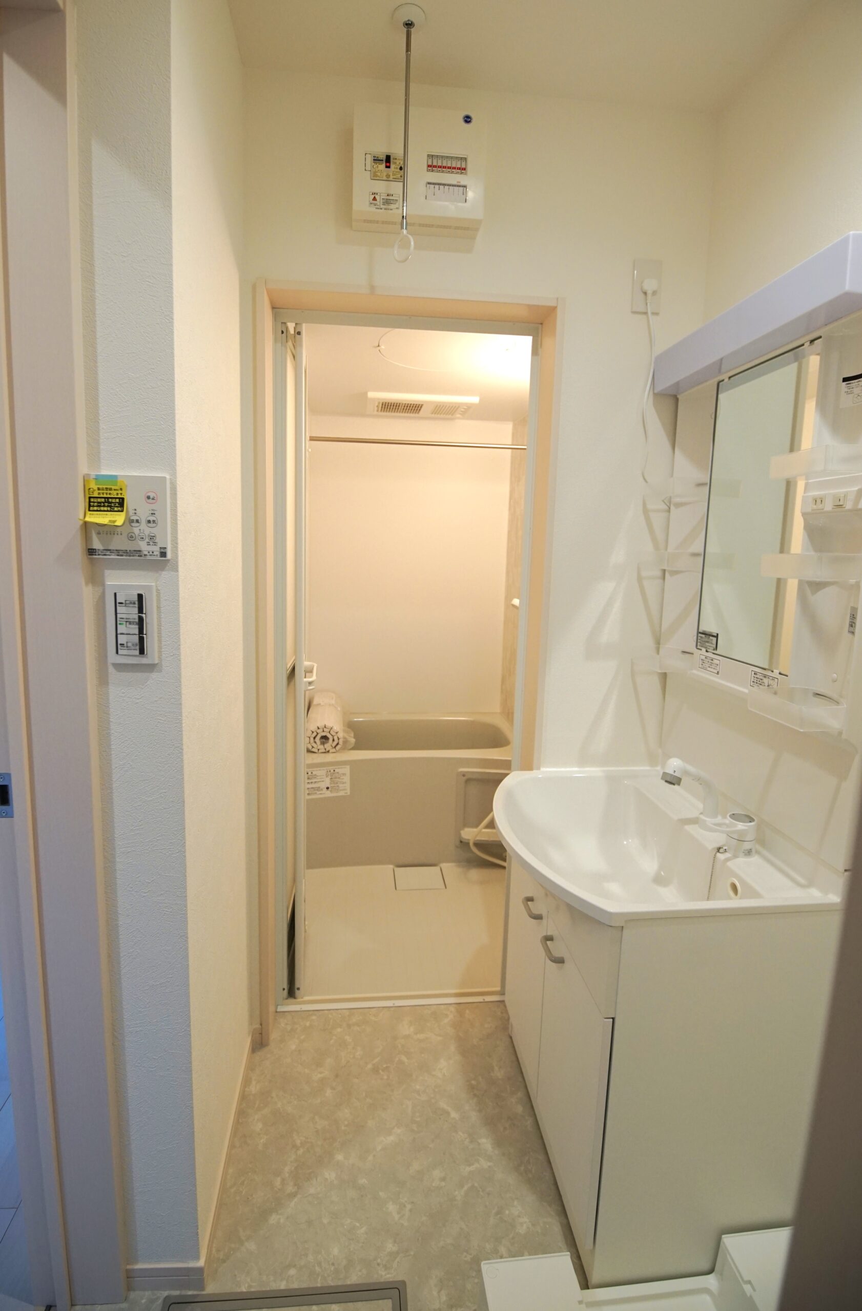 洗面や浴室にも物干しスペースがあって安心&便利です。