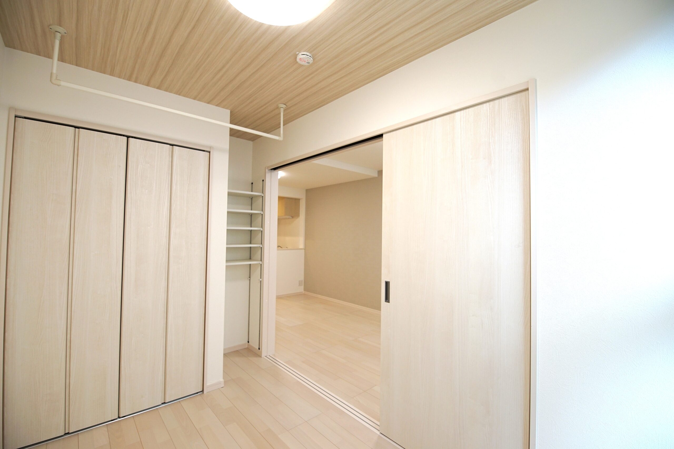 洋室の天井は木目柄とし、リビングとは少し雰囲気を変えたお部屋となっております。